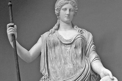 In der griechischen Mythologie gilt sie als Schwester von Zeus, Demeter, Hades, Hera und Poseidon.